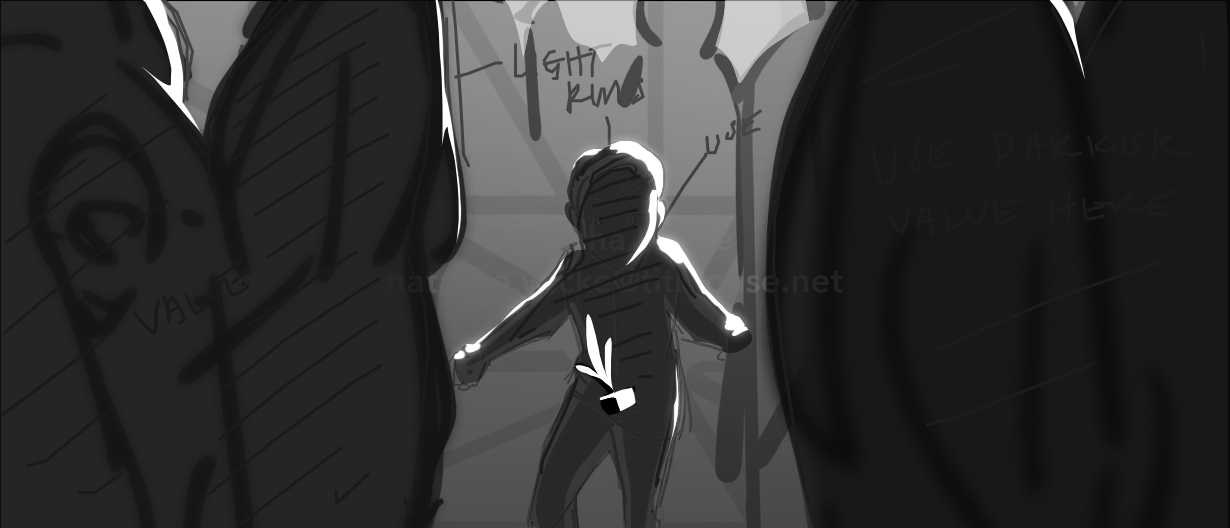 Color scripts and lighting directions are explored to support the mood and tone of each scene.