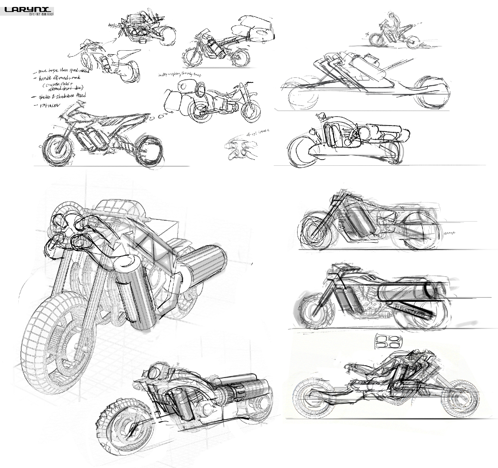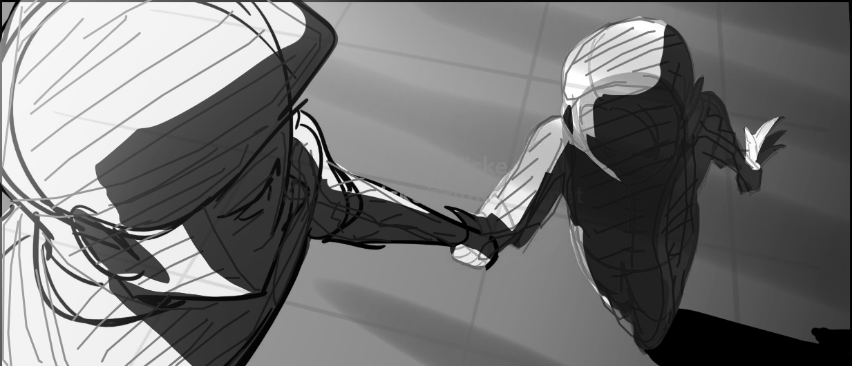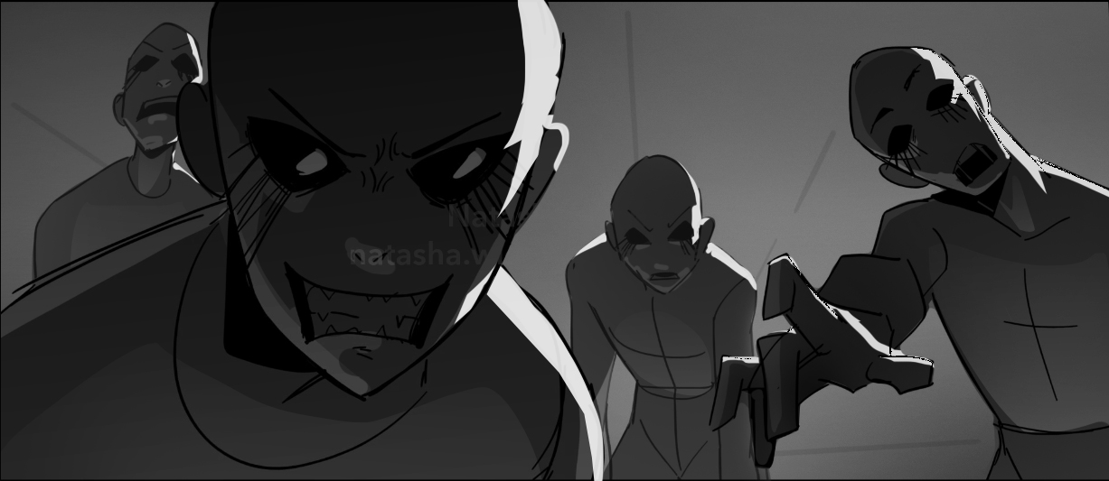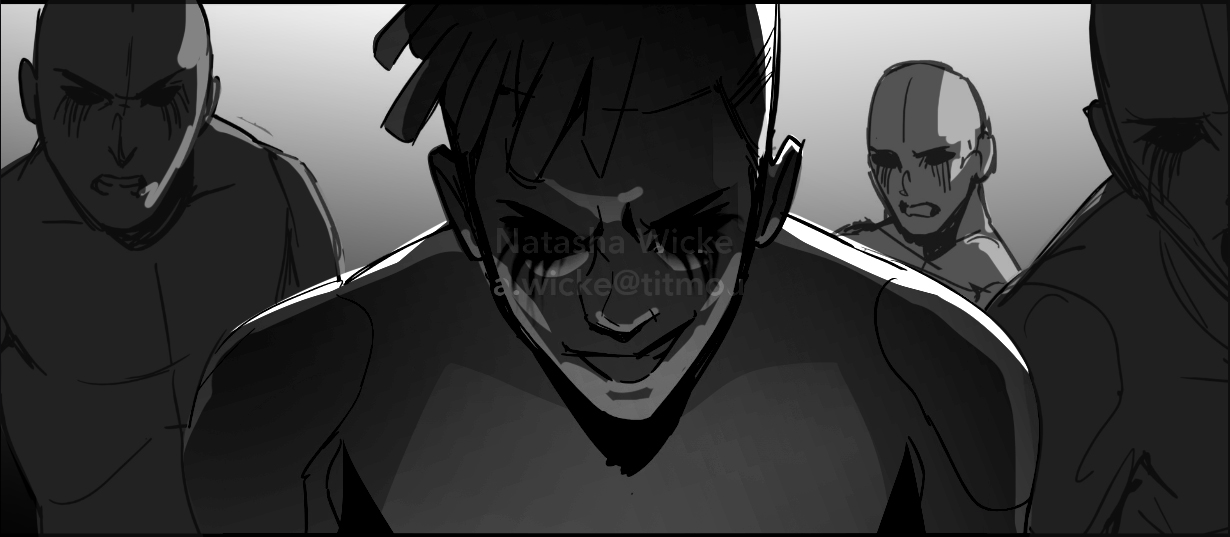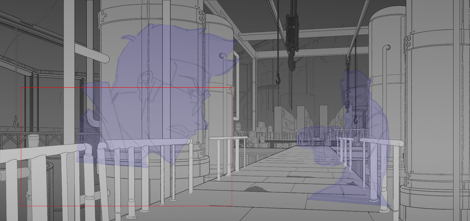 These layouts establish the structure and staging before color is introduced in the paint phase.