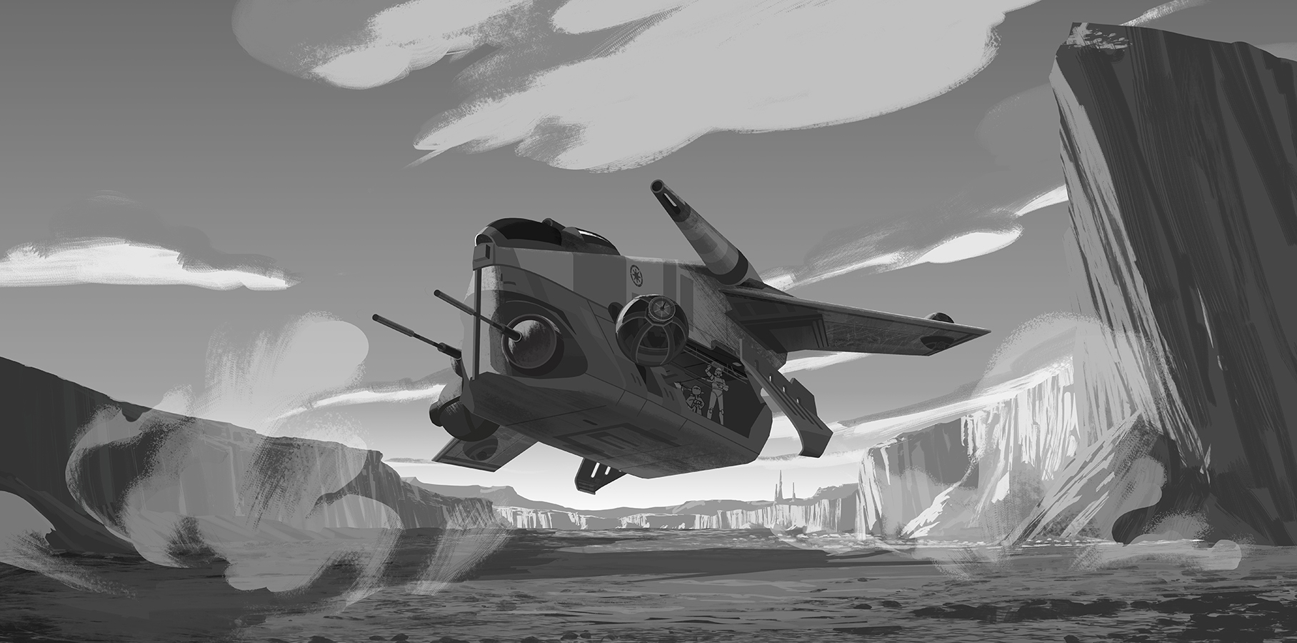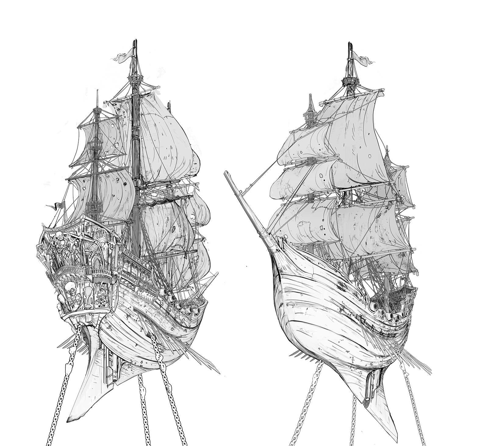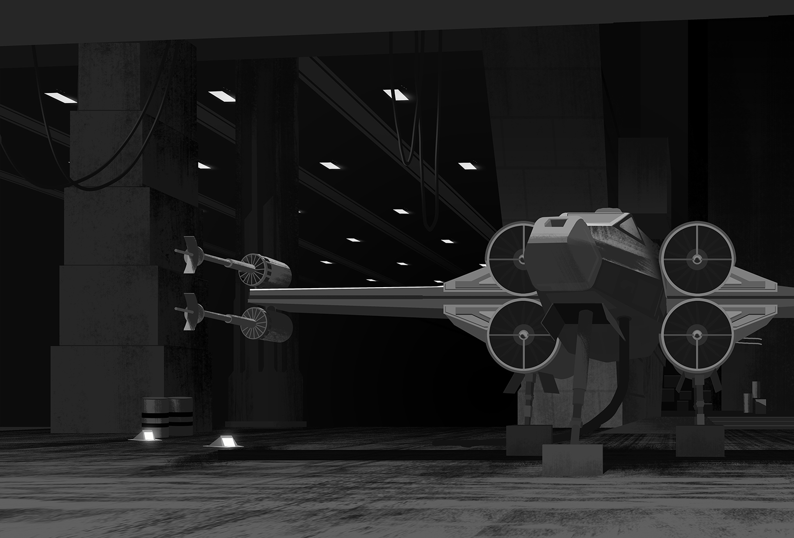These layouts establish the structure and staging before color is introduced in the paint phase.