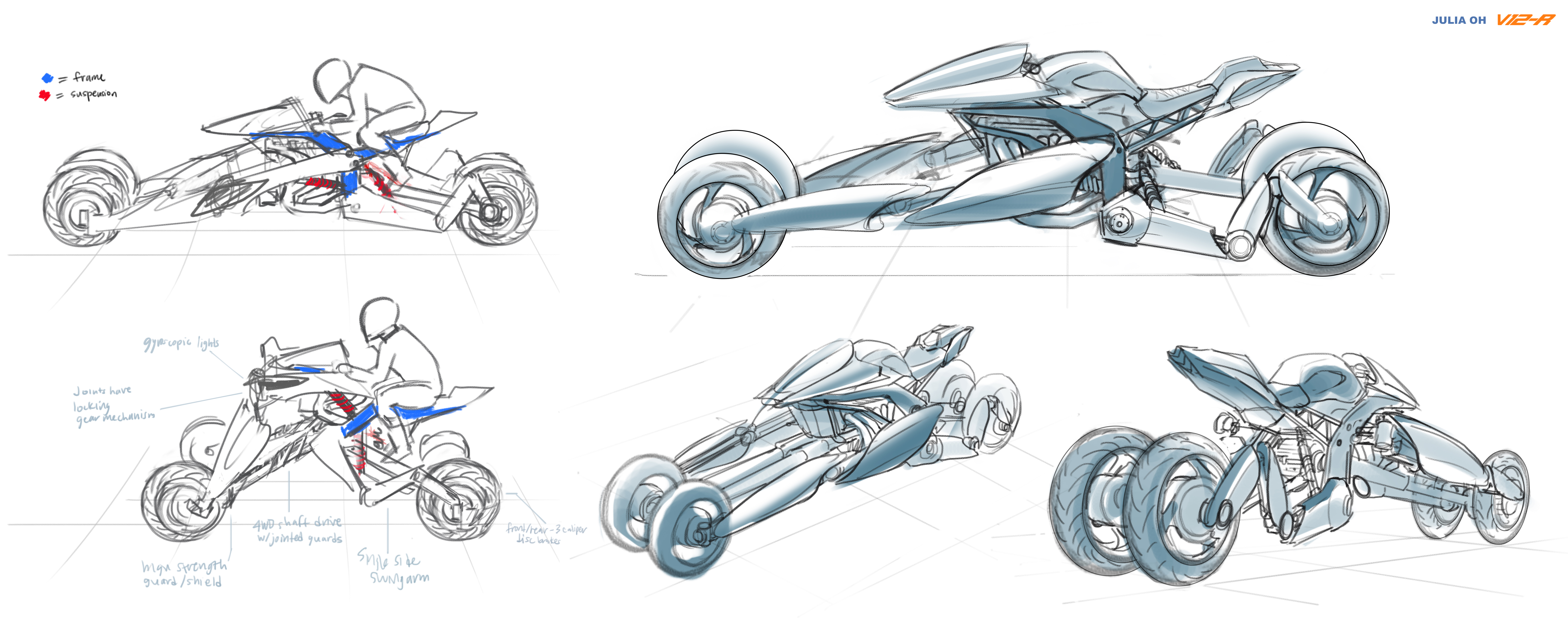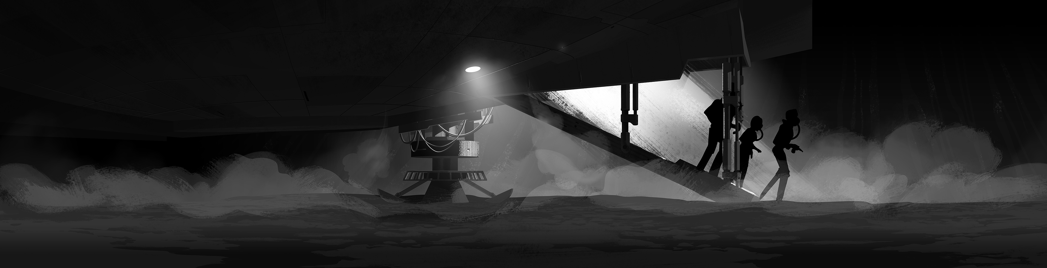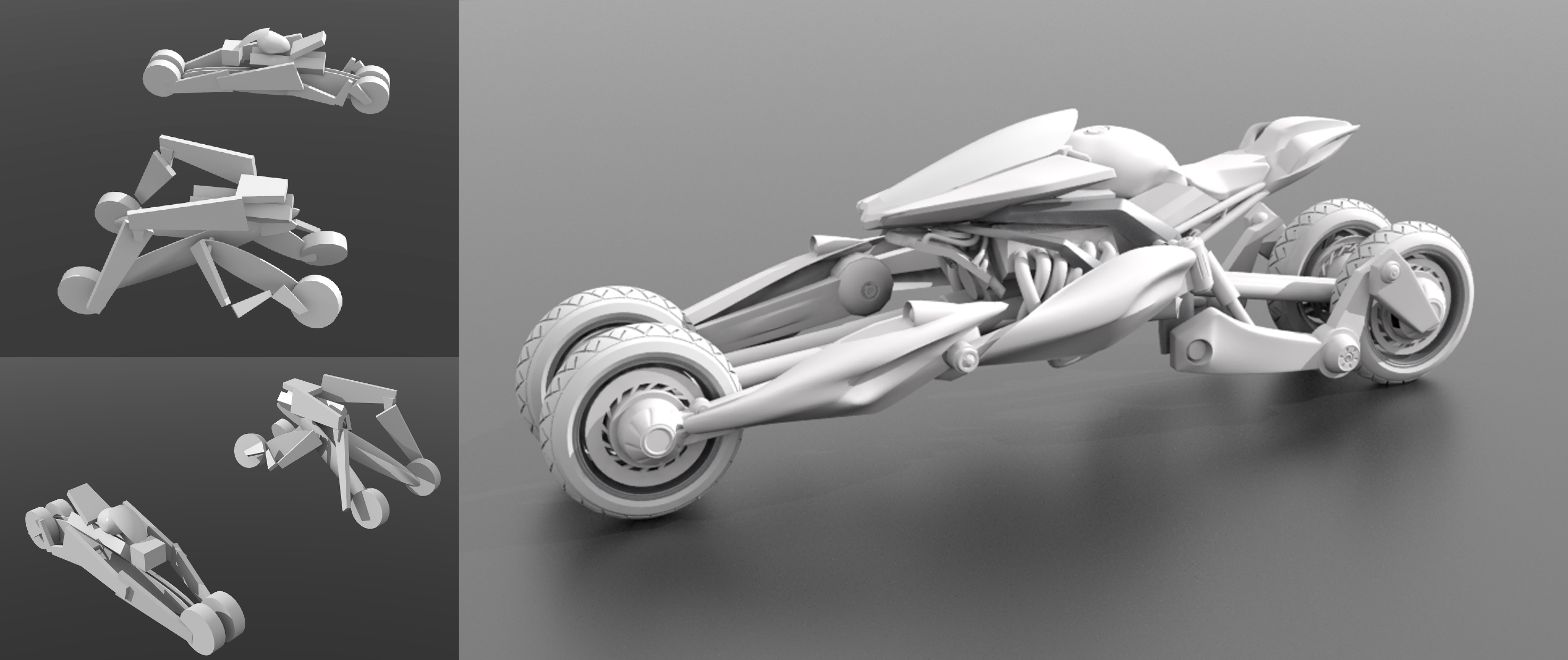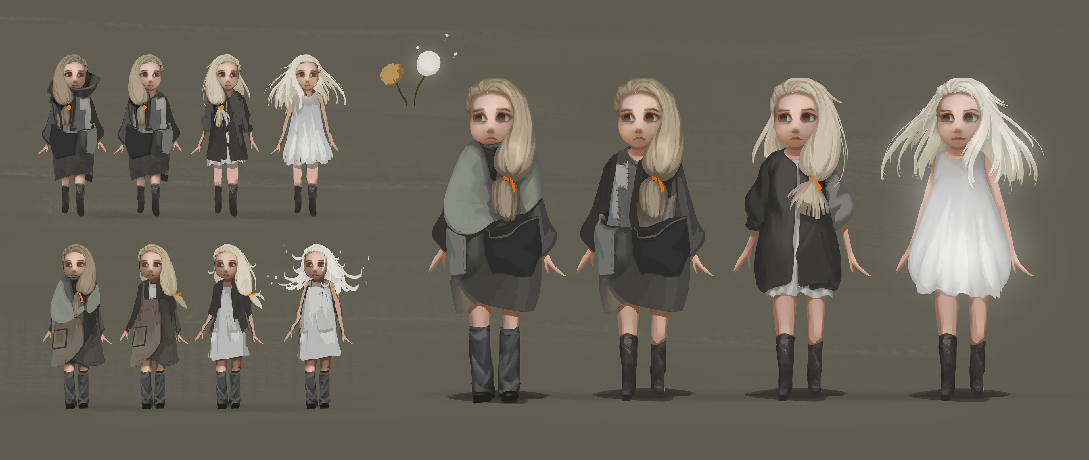 These layouts establish the structure and staging before color is introduced in the paint phase.