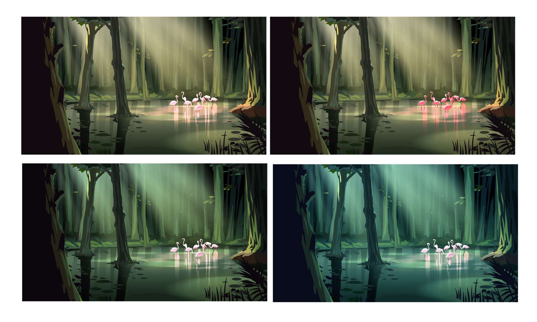 Final background paintings for production, created from approved design layouts.